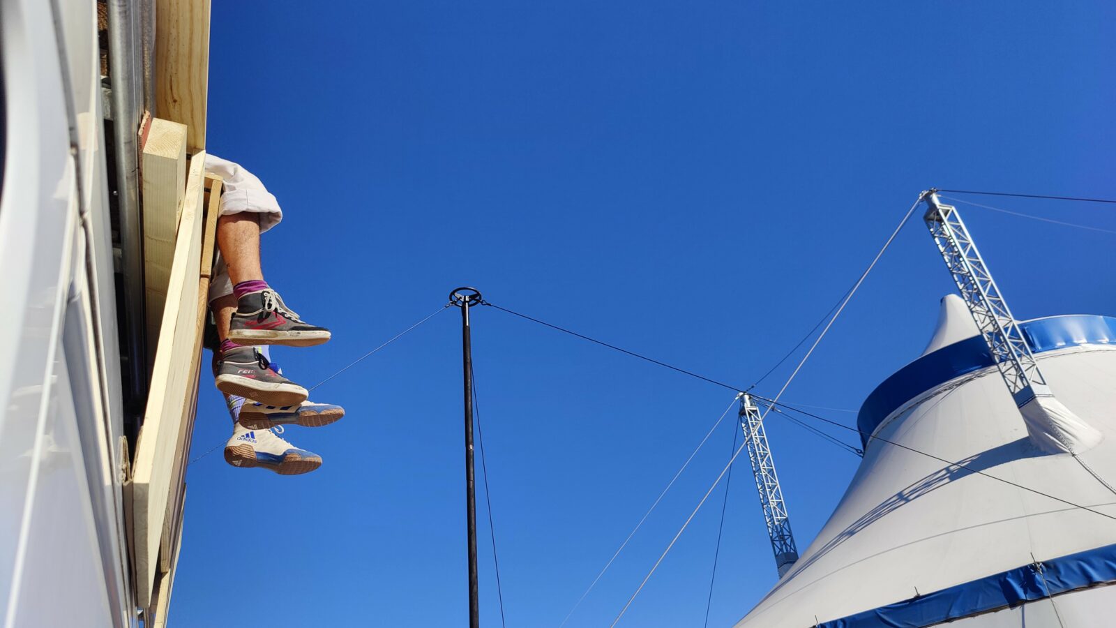 Un camion, un trampoline et un mât chinois. Joli terrain de jeu pour cette sortie de résidence pour deux acrobates. En phase de recherche, tous deux explorent leurs limites dans cette nouvelle création. Ils bondissent puis rebondissent sans relâche, et composent sous nos yeux une étonnante partition chorégraphique. La petite forme qu’ils nous présentent, d’une vingtaine de minutes, a déjà validé nombre d’éléments scéniques. Au centre, le trampoline donne le tempo. Le mur leur offre un contrepoint, une résistance dans les airs. Le mât chinois ralentit leurs actions. Quant au camion, en klaxonnant, il nous rappelle que le spectacle est loin d’être terminé. Entre deux sauts, les interprètes se portent, se relèvent, voire se surprennent. Et par leur complicité, ils donnent à voir ce qu’il y a de plus beau dans la relation à l’autre, entre soutien et entraide.