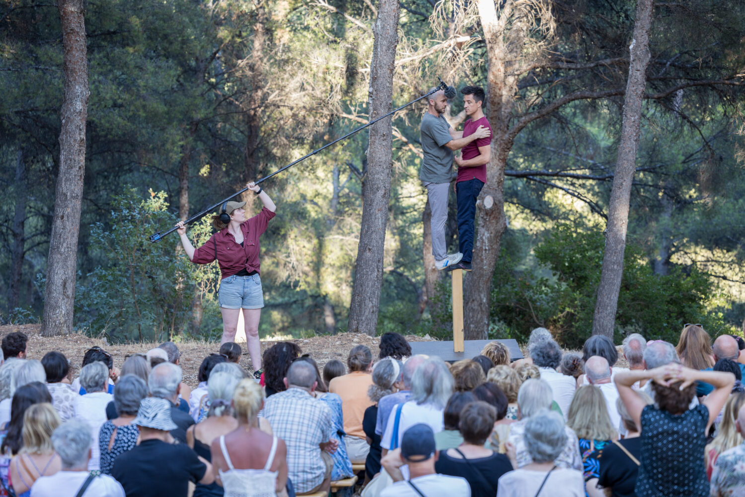Perchés sur une poutre en bois trop étroite, deux équilibristes se chuchotent une multitude de choses, sur la vie, sur l’avenir, sur les petits riens du quotidien… Au fil de leur discussion, la tension se fait de plus en plus sentir, quand soudain surgit une preneuse de son. Grâce à elle, tout nous devient audible : leurs mots pleins d’humour, le frottement de leurs vêtements, leur souffle, l’effort pour ne pas flancher. Les minutes s’étirent lentement. Leur performance se regarde et s’écoute. Le décalage entre leurs corps crispés et leurs paroles légères est à la fois comique et absurde. Tiendront-ils jusqu’au bout ? Peut-être. Mais, après tout, qu’importe. Car pour notre duo d’artistes, l’essentiel est simplement de prendre le temps.